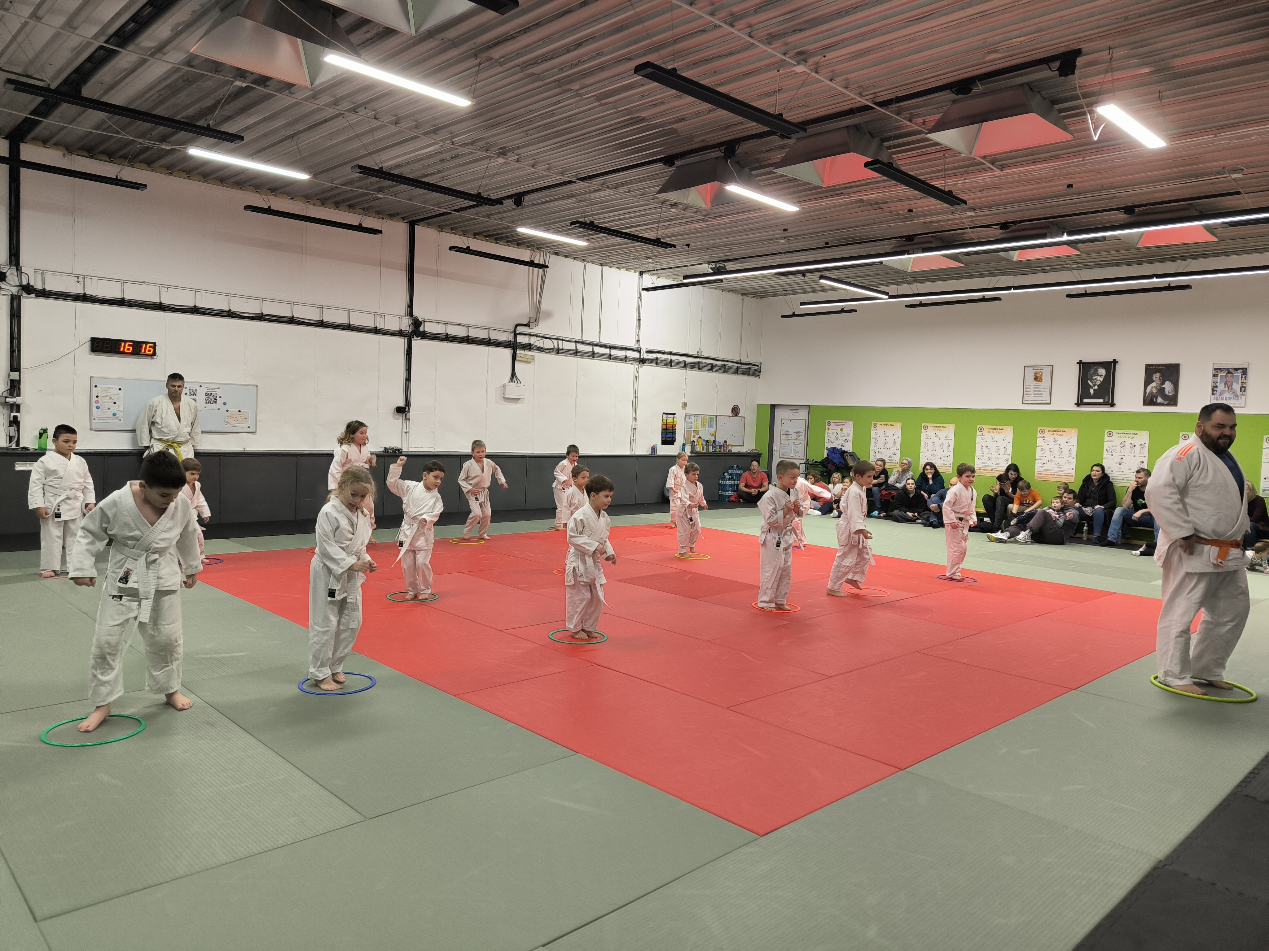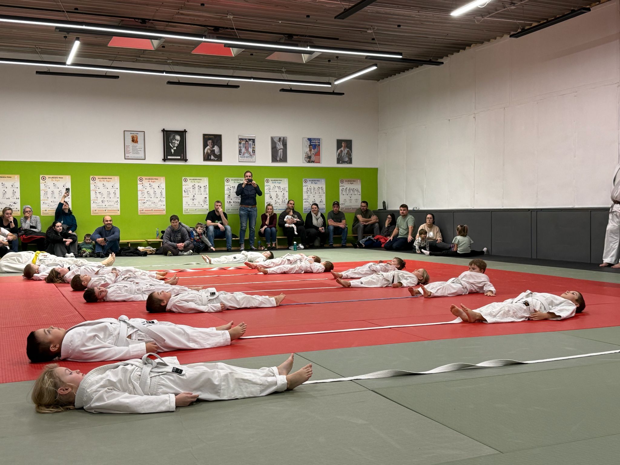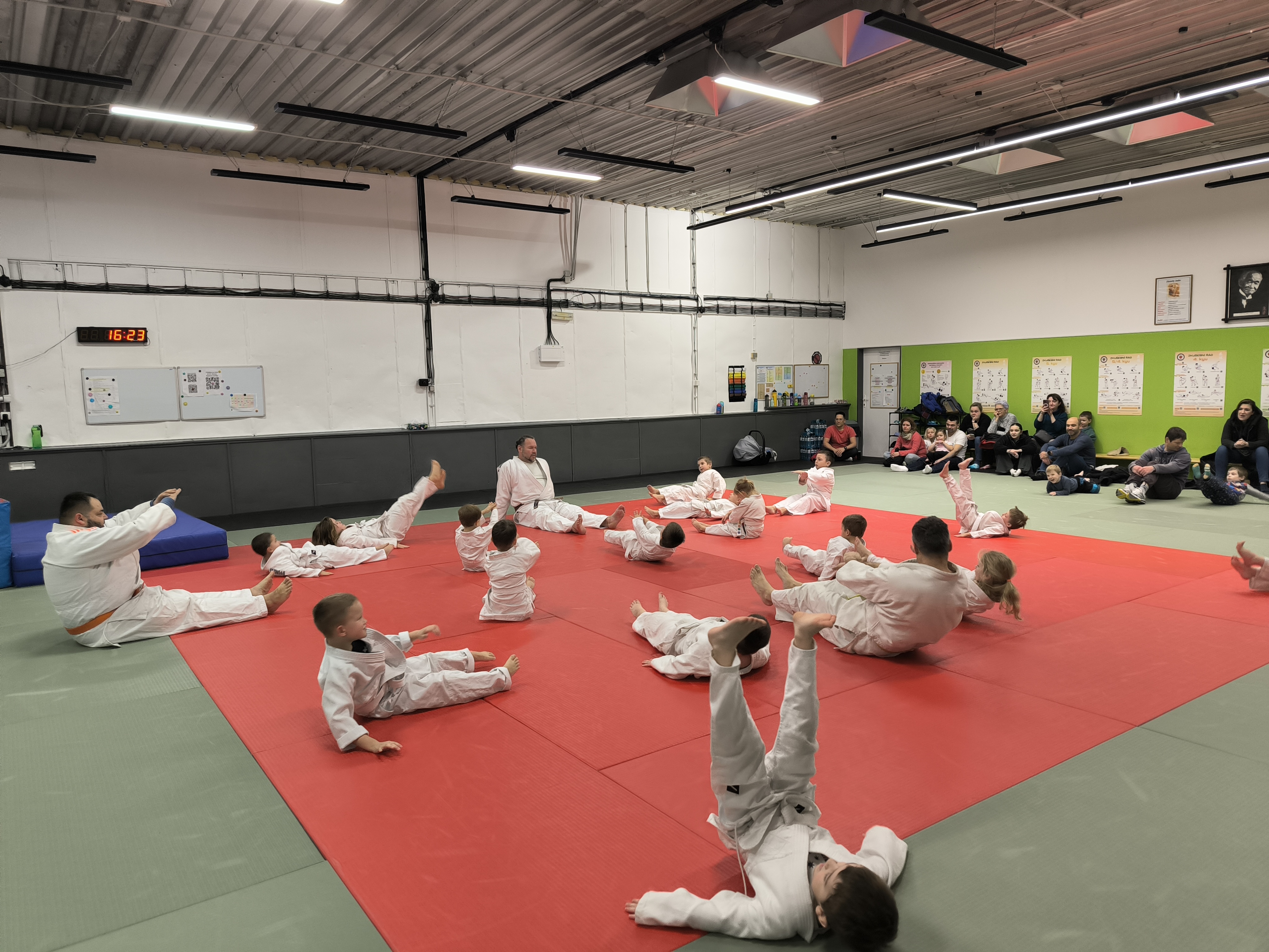 Závěrečnou lekci roku připravila trenérka Pavla Pošmurná, která pro děti nachystala ukázkový trénink pro rodiče. Ti tak mohli vidět, co se jejich ratolesti od září naučily – od základních pádů až po jednoduché herní situace na tatami, typické pro trénink nejmenších judistů. Rodiče vytvořili skvělou atmosféru v hledišti, děti bojovaly s úsměvem a bez ostychu.
